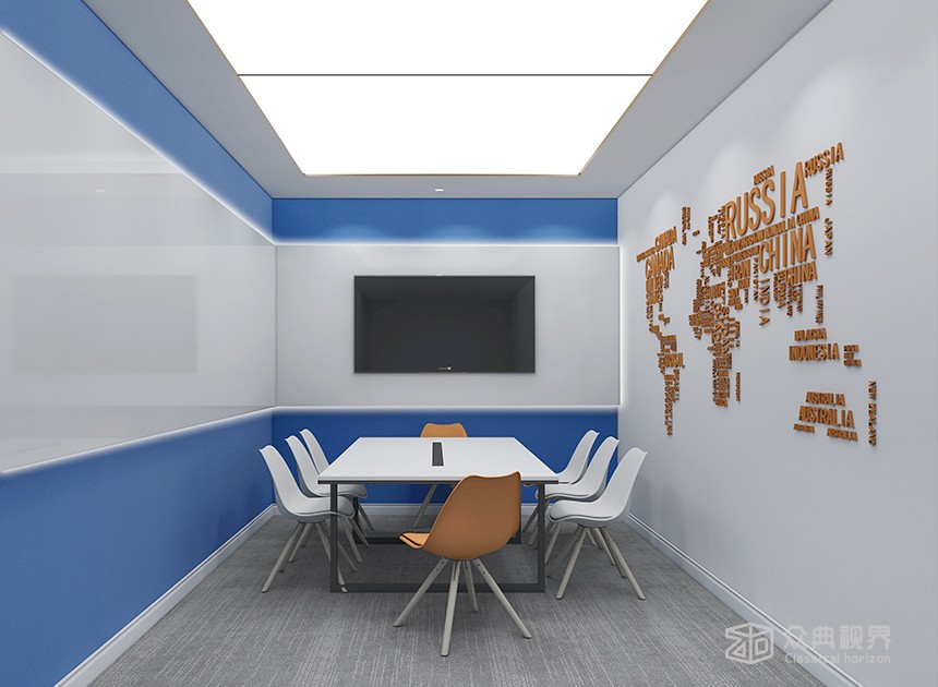北京眾望教育,項(xiàng)目面積2000㎡,是一家教育平臺公司,公司的員工很年輕,因此設(shè)計(jì)風(fēng)格偏年輕化、活潑、動感。在設(shè)計(jì)中,采用了企業(yè)色的飽和度比較高的藍(lán)色和橙色,大量的運(yùn)用色塊,使得整個空間非常的有活力。
